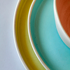 The collection is thrown on the potter’s wheel. Designed to suit today's informal eating, this versatile range of tableware is well detailed, hand finished and has a natural feel. Its special visual quality lies in the contrast between the smooth texture of the unglazed and polished stoneware and the satin matt glaze in its pastel shades, designed to provide a subtle backdrop for food to be displayed and presented. The large plates can be used as under-plates when combined with small plates, sauce dishes, and bowls as part of the serving arrangement with three different sizes of coffee cups.